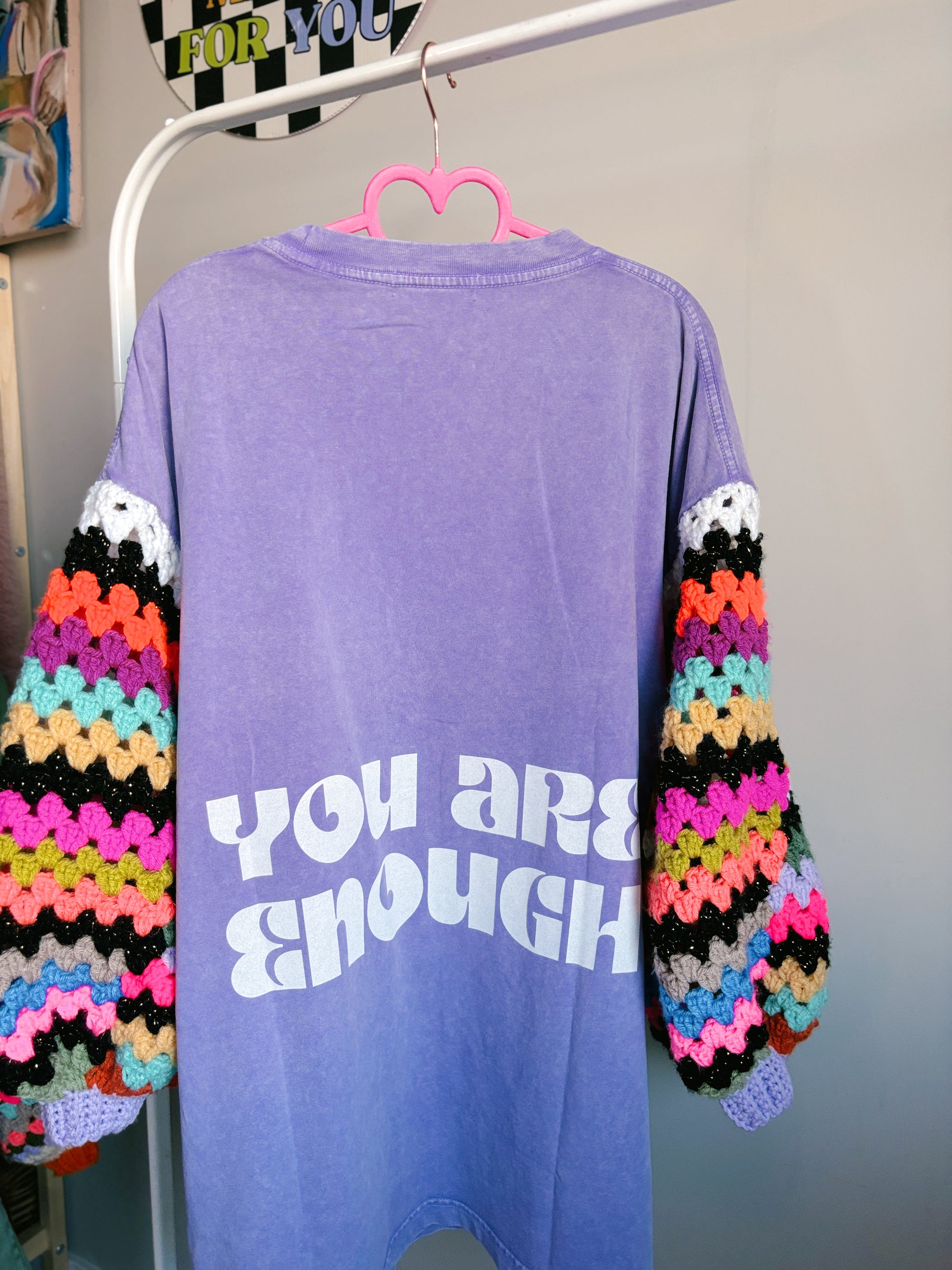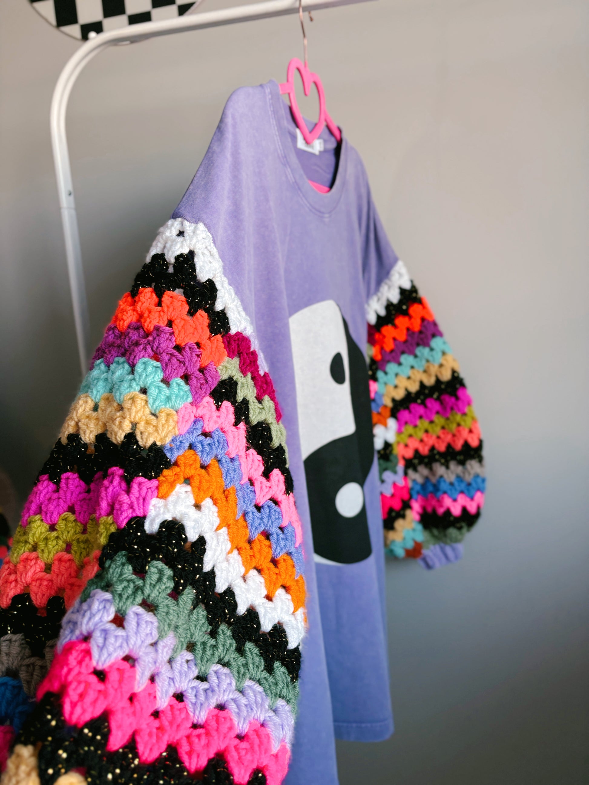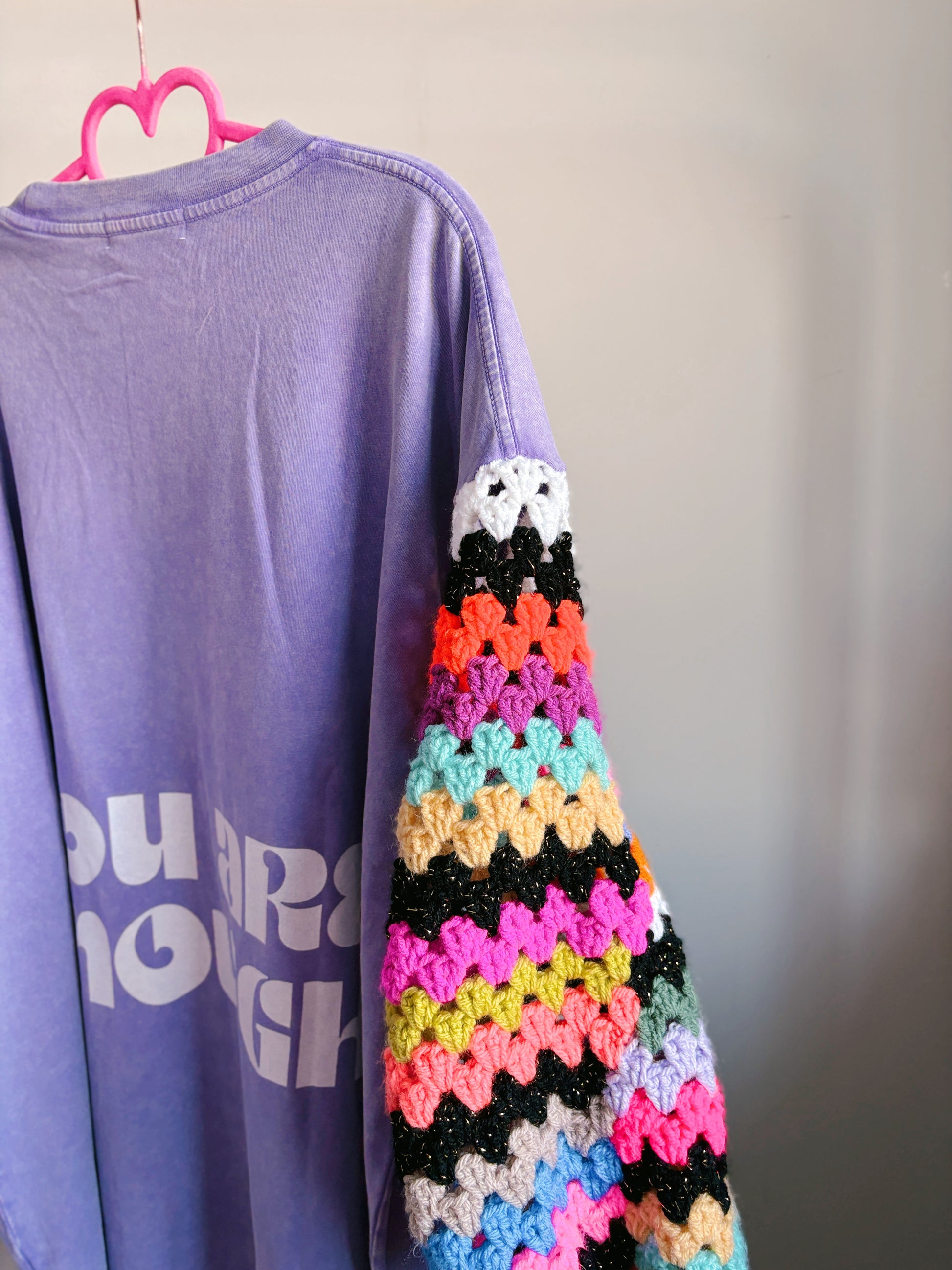 Get ready to turn heads and stay cozy with my handmade crocheted sleeves paired with custom graphic t-shirts! It's the ultimate combo of style and comfort, designed to make you stand out and feel awesome all day long. Don’t miss out on this fun, one-of-a-kind look!
