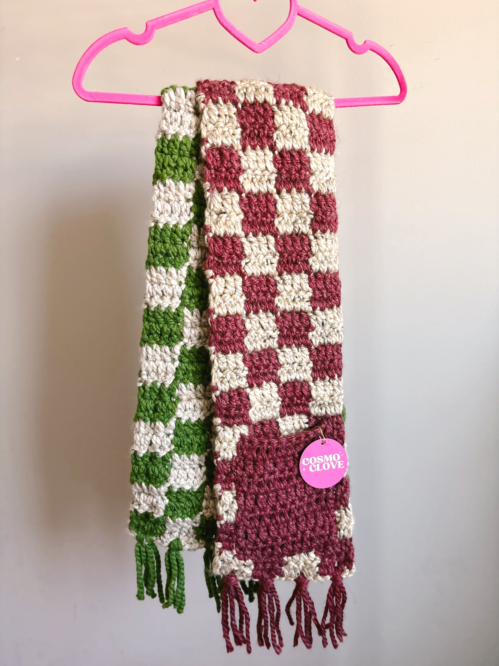 Cosmo+Clove scarves come in Wool-blend yarn and are adorned with practical pockets and dazzling tassels, creating the perfect combination of comfort and style for your fall and winter wardrobe!