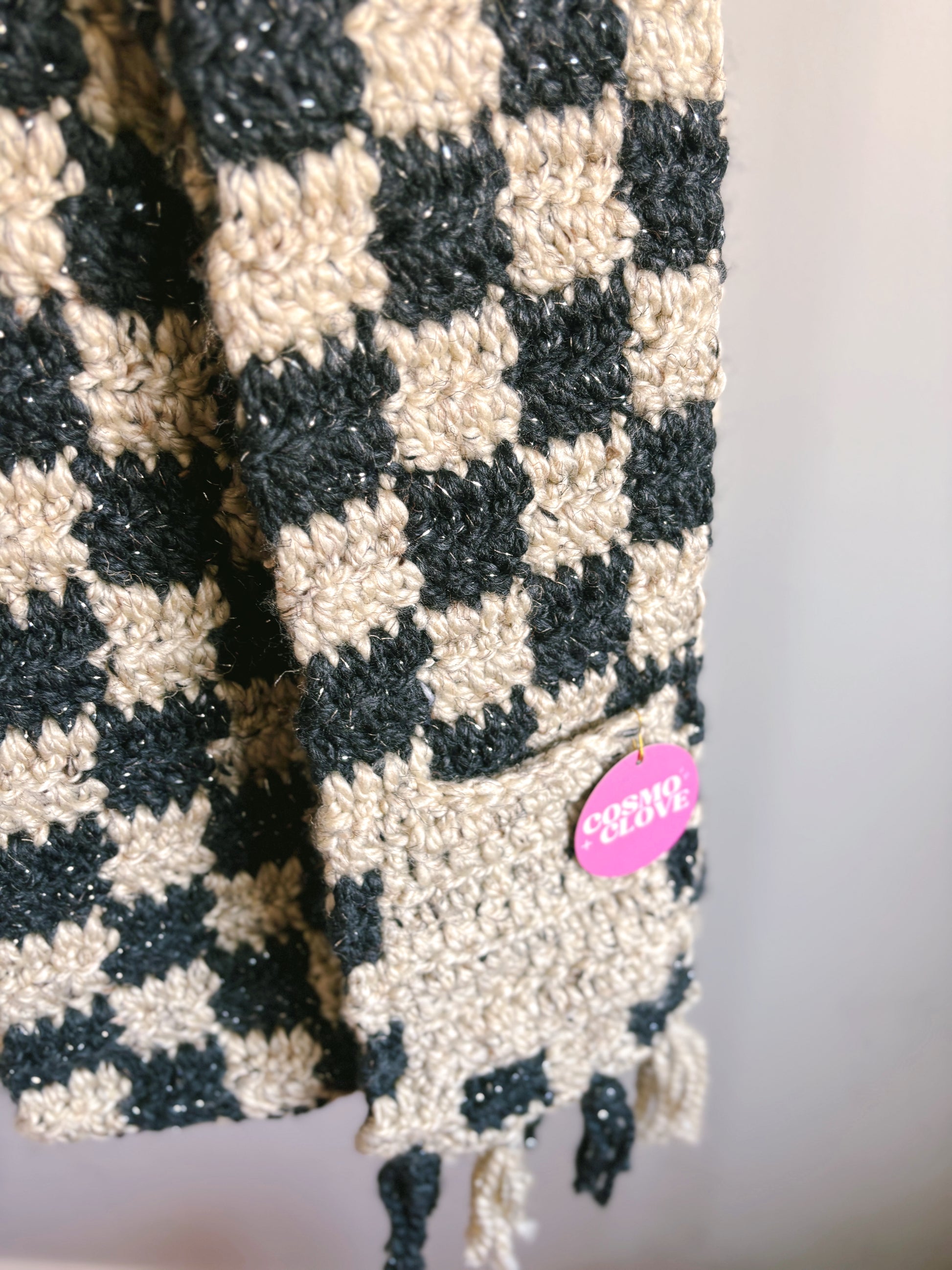 Cosmo+Clove scarves come in Wool-blend yarn and are adorned with practical pockets and dazzling tassels, creating the perfect combination of comfort and style for your fall and winter wardrobe!