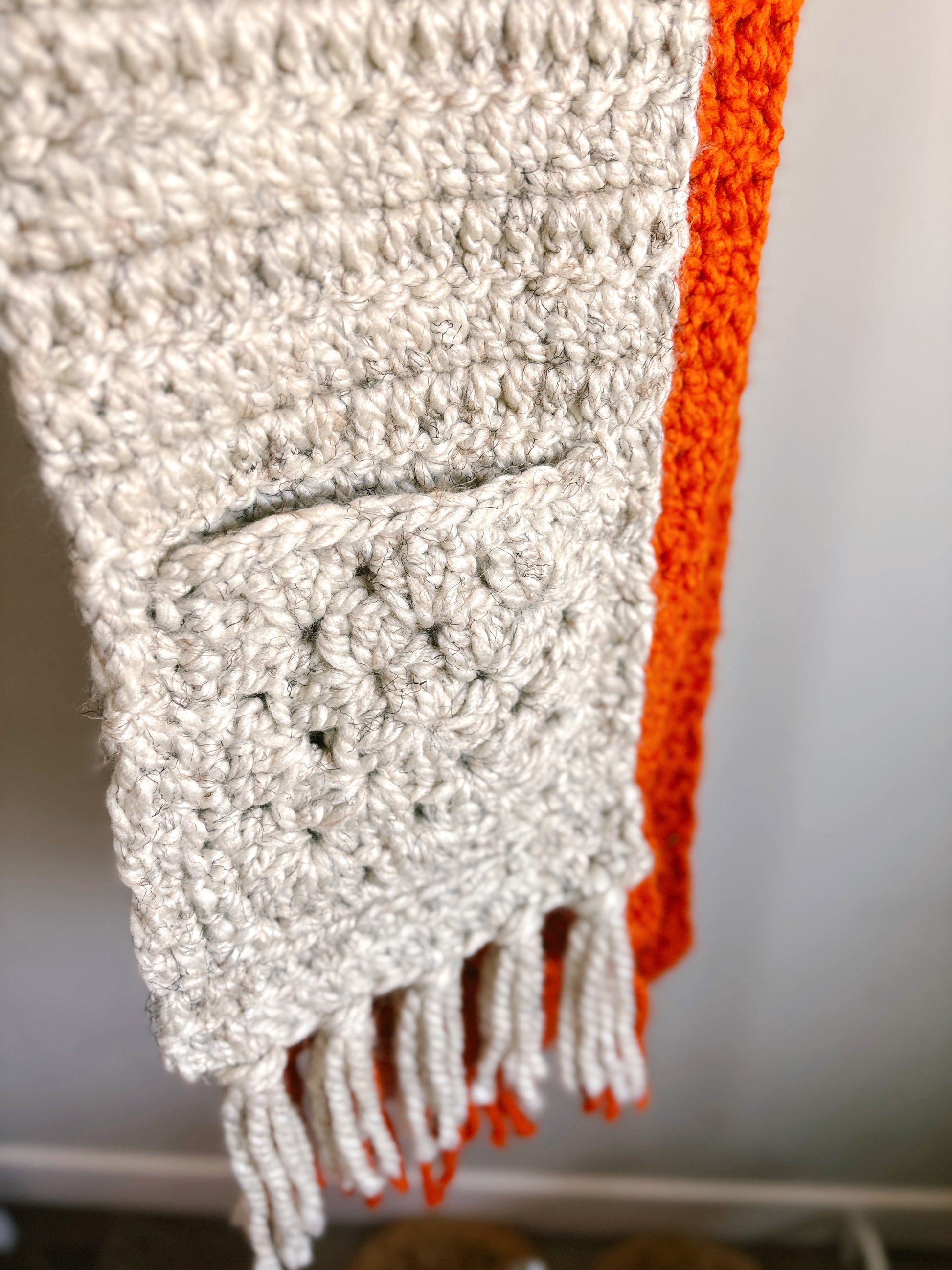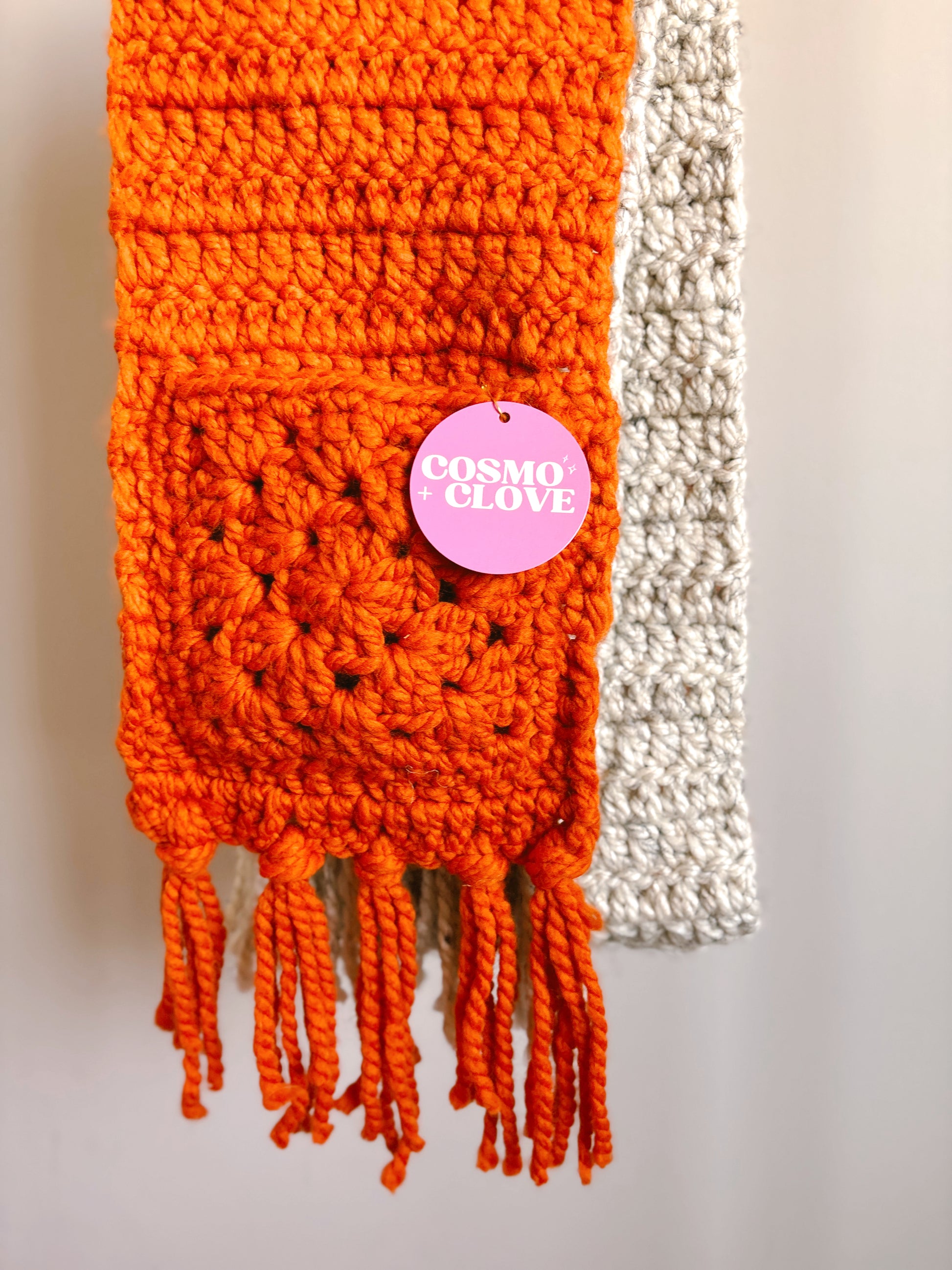 Cosmo+Clove scarves come in Wool-blend yarn and are adorned with practical pockets and dazzling tassels, creating the perfect combination of comfort and style for your fall and winter wardrobe!